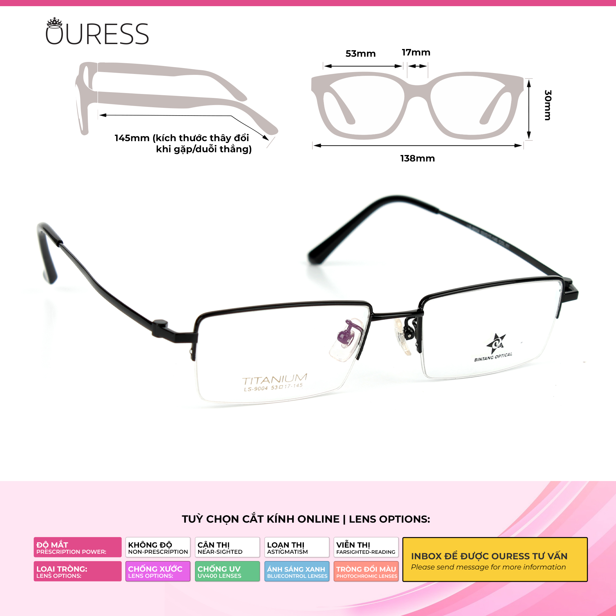 Lưu ý: Quý khách vui lòng cung cấp đầy đủ thông tin như trên cho Ouress trong vòng 02 ngày kể từ ngày đặt hàng. Hết thời hạn mà không nhận được thông tin, Ouress xin phép được gửi mặc định tròng 0 độ để đảm bảo quy định giao hàng của sàn.