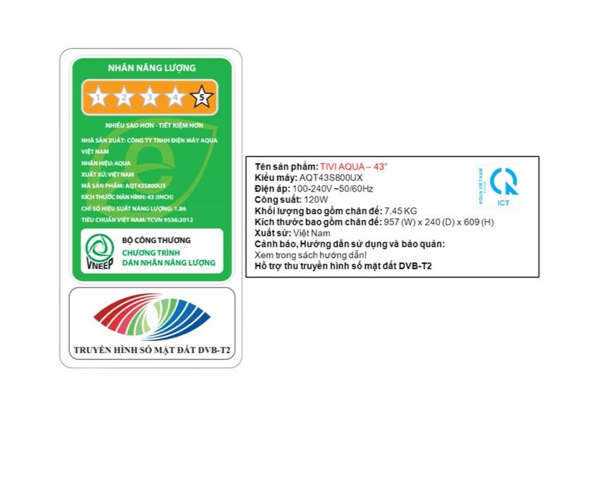 Màn hình 43 inch phù hợp với các không gian có diện tích nhỏ. Độ phân giải 4K cùng công nghệ màn hình QLED cho hình ảnh hiển sắc nét, sống động. Công nghệ Dolby Vision mang đến trải nghiệm rạp phim tại gia. Công nghệ chống xé hình MEMC cho hình ảnh chuyển động mượt mà hơn. Tận hưởng âm thanh vòm 3D sống động cùng công nghệ Dolby Atmos. Hệ điều hành Google TV dễ sử dụng cùng kho ứng dụng phong phú. Điều khiển và tìm kiếm trực tiếp trên tivi mà không cần sử dụng remote. Loại Tivi: Google Tivi QLED Kích cỡ màn hình: 43 inch Độ phân giải: 4K (Ultra HD) Loại màn hình: Đèn nền: LED nền (Direct LED), Tấm nền: VA LCD Hệ điều hành: Google TV Chất liệu chân đế: Kim loại Chất liệu viền tivi: Kim loại Nơi sản xuất: Việt Nam Năm ra mắt: 2024 Công nghệ hình ảnh: HLG HDR10 Dolby Vision Quantum Dot Kiểm soát đèn nền - Local Dimming Đồng bộ khung hình/tần số quét chơi game VRR Tăng cường chuyển động MEMC Giảm độ trễ chơi game Auto Low Latency Mode (ALLM) Game Mode Bộ xử lý: Bộ xử lý ARM CA55 Quad-Core with TEE 1.5GHz Tần số quét thực: 60 Hz Tiện ích: Điều khiển tivi bằng điện thoại: Ứng dụng Haismart Ứng dụng Android TV Remote Control Điều khiển bằng giọng nói: Google Assistant có tiếng Việt Chiếu hình từ điện thoại lên TV: Chromecast Remote thông minh: Remote tích hợp micro tìm kiếm bằng giọng nói Kết nối ứng dụng các thiết bị trong nhà: Haismart Ứng dụng phổ biến: YouTube Netflix Clip TV FPT Play Spotify Google Play Tiện ích thông minh khác: Micro tích hợp trên TV - điều khiển giọng nói rảnh tay Công nghệ âm thanh Tổng công suất loa: 24W Số lượng loa: 2 loa Âm thanh vòm: Dolby Atmos Các công nghệ khác: Cân bằng âm thanh Sound-EQ dbx-tv Cổng kết nối Kết nối Internet: Wi-Fi Cổng mạng LAN Kết nối không dây: Bluetooth (Kết nối loa, thiết bị di động) USB: 2 cổng USB A Cổng nhận hình ảnh, âm thanh: 4 cổng HDMI có 1 cổng HDMI eARC (ARC), 1 cổng Composite Cổng xuất âm thanh: 1 cổng 3.5 mm, 1 cổng Optical (Digital Audio), 1 cổng eARC (ARC) Kích thước có chân, đặt bàn: Ngang 95.7 cm - Cao 60.9 cm - Dày 24 cm Khối lượng có chân: 7.45 kg Kích thước không chân, treo tường: Ngang 95.7 cm - Cao 55.6 cm - Dày 8.22 cm Khối lượng không chân: 7.2 kg Hãng: AQUA