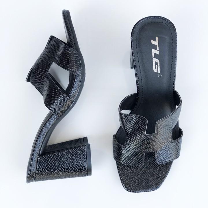- Dép nữ cao gót quai ngang một bản TRường Hải màu đen gót vuông 8cm da mềm DN139 thiết kế với kiểu dáng ôm chân, thon gọn, thoải mái di chuyển mà không lo