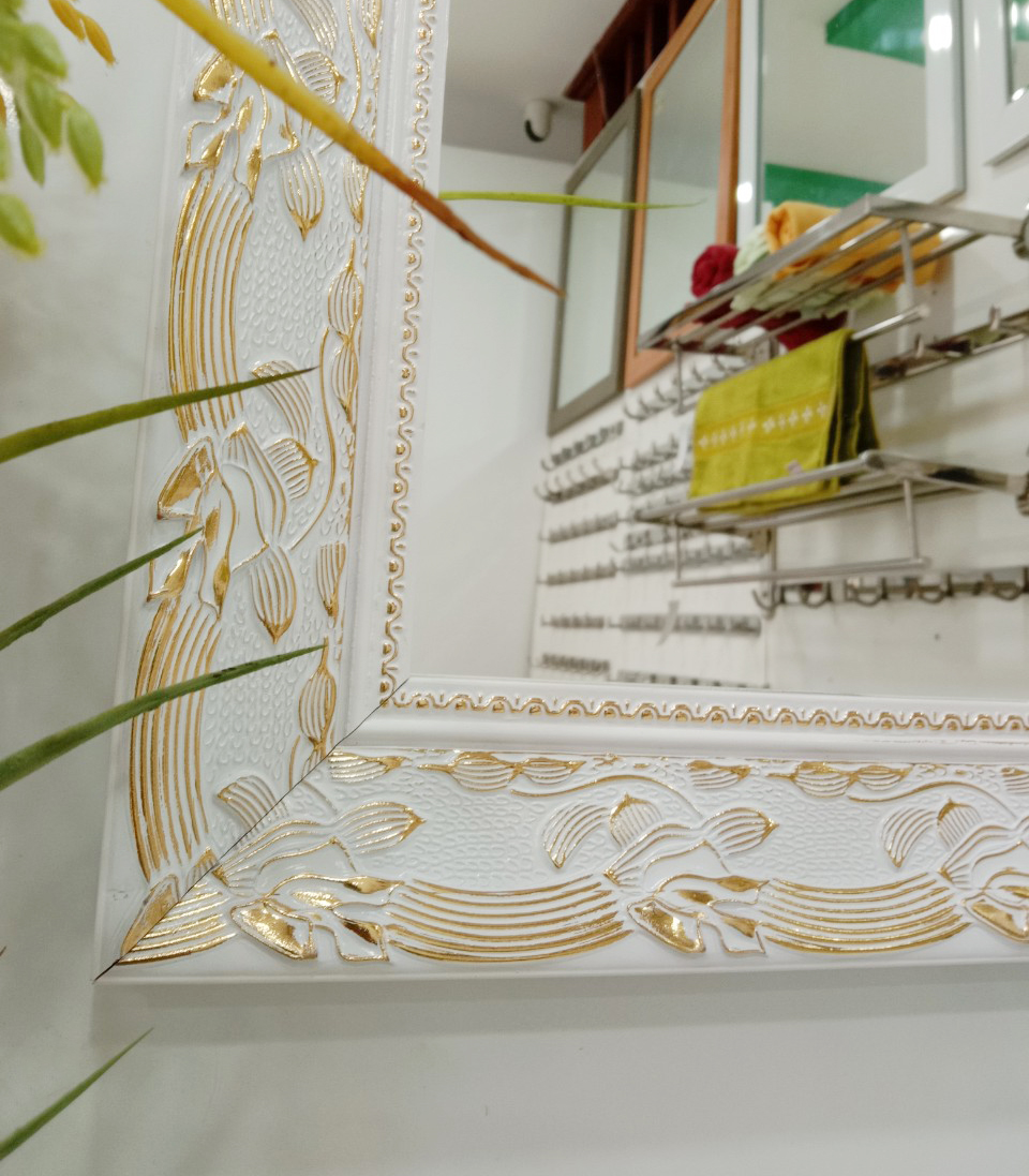 ✨Gương soi Kibath khung màu trắng bảng 6 phân họa tiết vàng KT 60x80 cm, KB-129