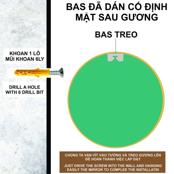 THÔNG TIN SẢN PHẨM - Kích thước: Đường Kính D50cm (kích thước bao gồm khung) - Chất Liệu: Phôi gương nhập khẩu từ tập đoàn AGC (Bỉ) nhà máy sản xuất tại Indonesia dày 5ly.