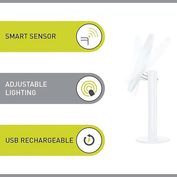 Công nghệ phát hiện cảm biến chính xác 3 chế độ tông màu sáng Tự nhiên/Sáng/Ấm Độ phóng đại 5X để nhìn rõ những gì bạn đang làm Gương di động từ tính 10x có