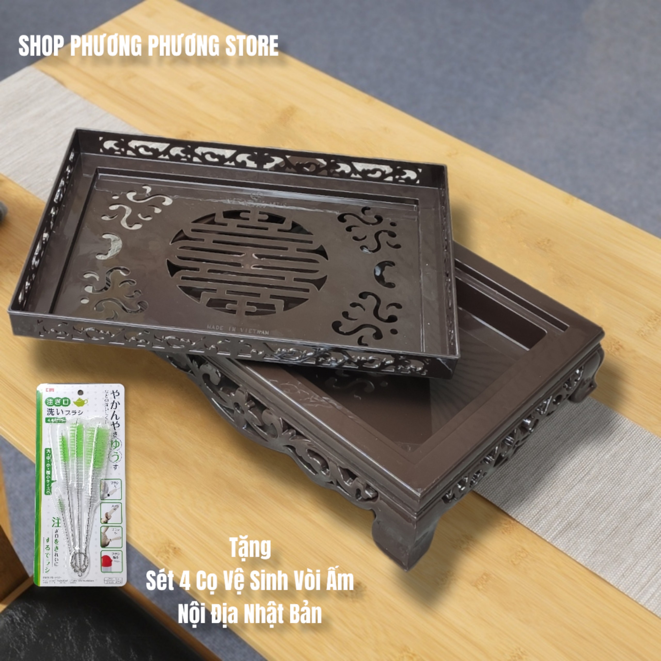 ( HÀNG CAO CẤP ) KHAY TRÀ KIỂU DÁNG CỔ SANG TRỌNG CÓ KHAY HỨNG NƯỚC ( TẶNG SÉT 4 CHIẾC CỌ VỆ SINH VÒI ẤM NỘI ĐỊA NHẬT BẢN