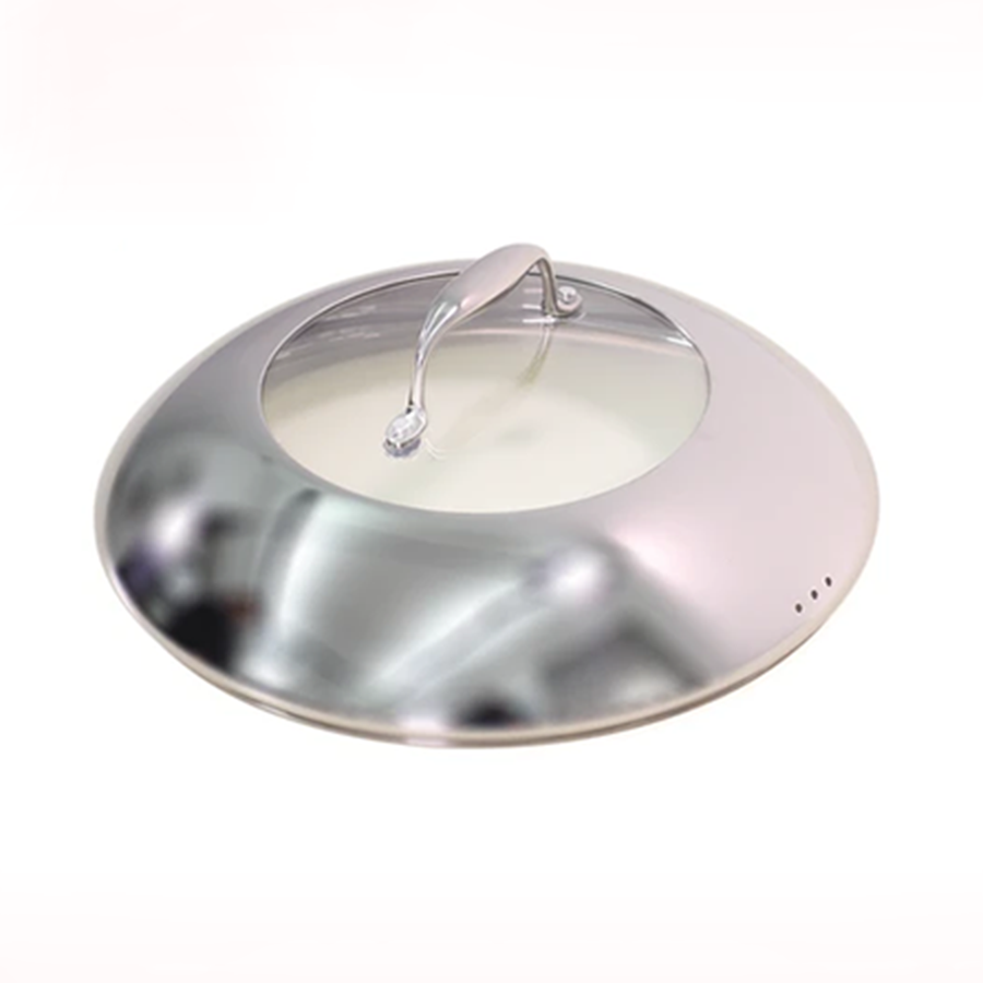 Vung bằng thuỷ tinh chịu nhiệt kết hợp với các chi tiết inox giúp dễ quan sát thực phẩm trong khi nấu. Logo iMat được in lên phần thuỷ tinh. Nút thoát hơi to bọc inox an toàn. Đối với chảo 28cm, phần inox sẽ lớn hơn thuỷ tinh.