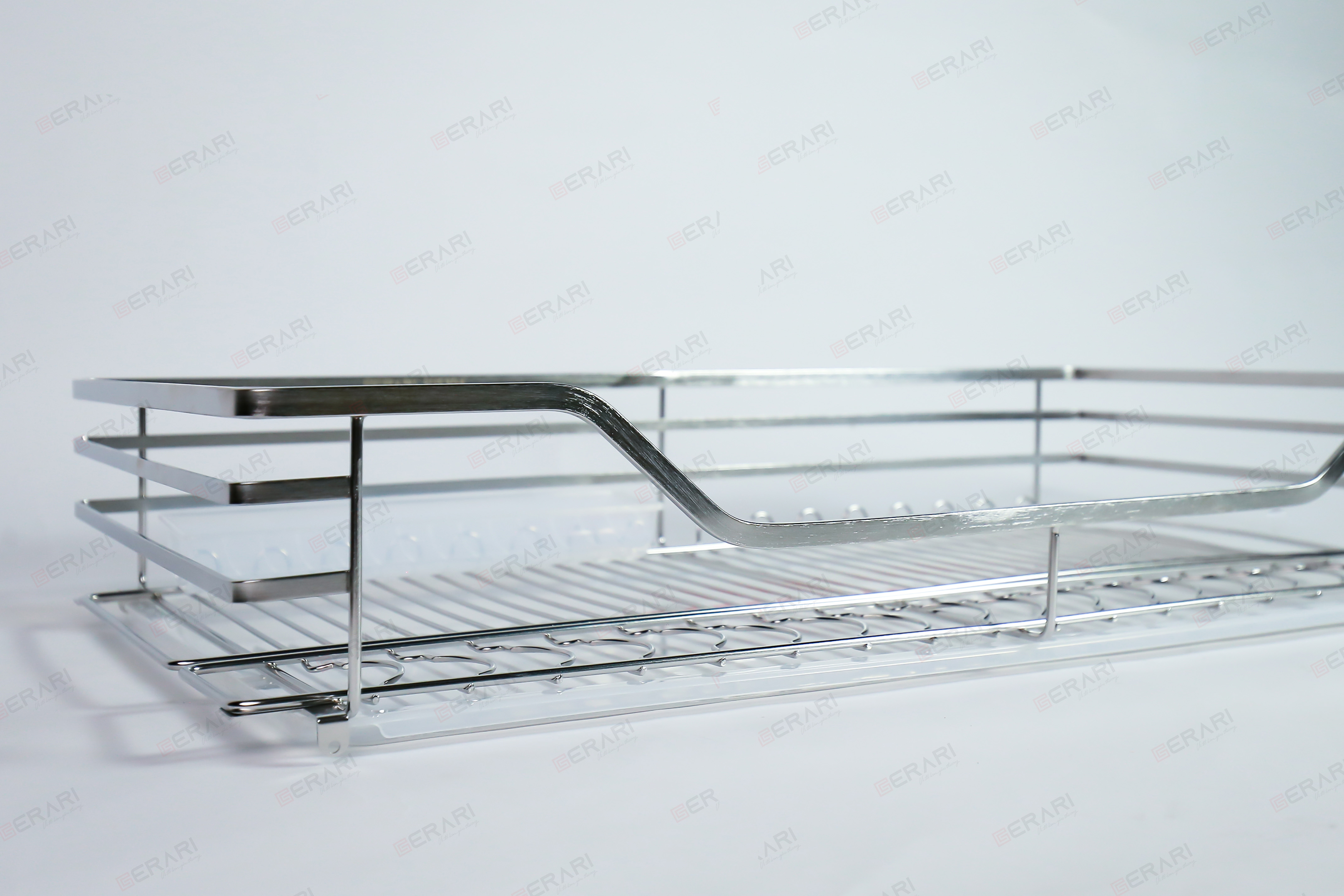 Thông tin sản phẩm: - Màu sắc: Inox mờ - Chất liệu: Inox 304, nan dẹt Tính năng sản phẩm: - Sử dụng ray âm giảm chấn cao cấp, có lắp che ray - Có