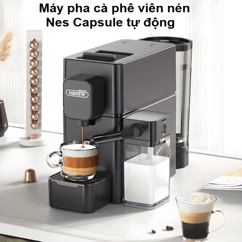 Máy pha cà phê viên nén Nespresso tự động pha Cappuccino và Latte nhãn hiệu HiBREW H15