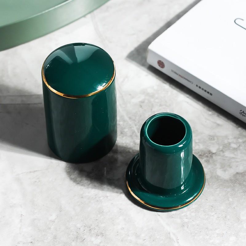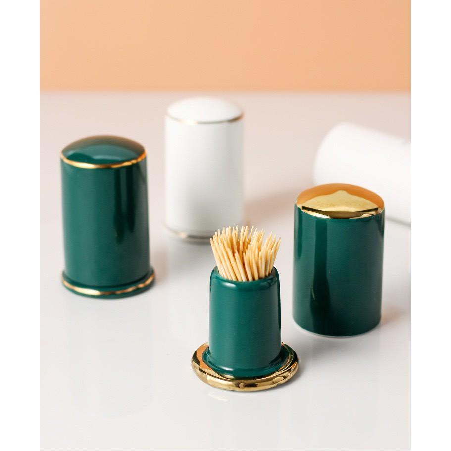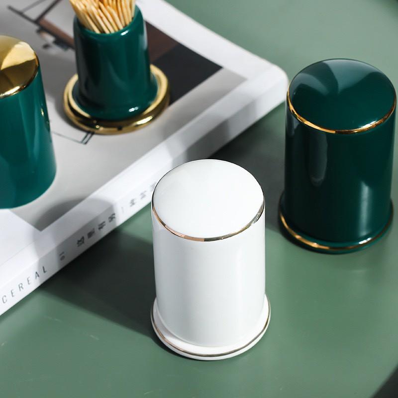 ✨(Hàng Có Sẵn) Hũ Đựng Tăm Trơn Gốm Sứ Viền Vàng Cao Cấp