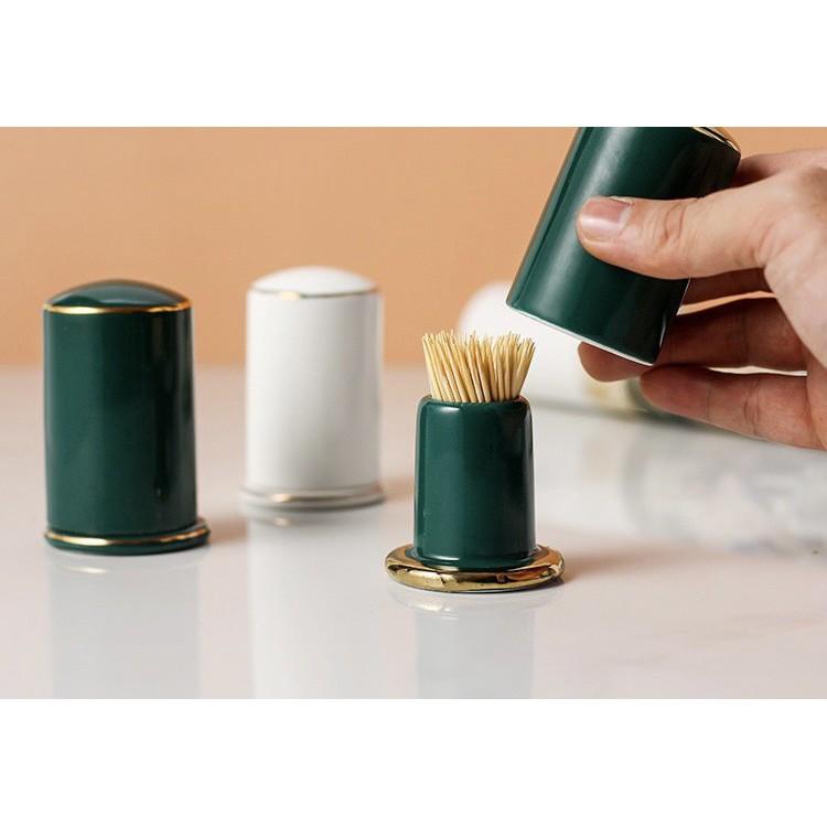 Hũ tăm bằng sứ cao cấp Màu sắc sang trọng Ngoài công dụng chính còn là phụ kiện trang trí trên bàn ăn