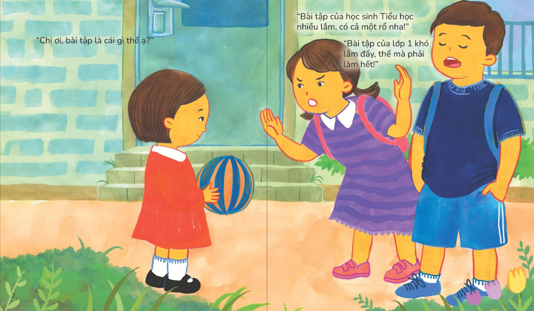 Các anh chị lớp lớn cứ dọa Hà Linh rằng lên lớp 1 phải làm nhiều bài tập. Hà Linh đâu biết bài tập là gì, nghe thế chỉ thấy lo sợ thôi. Nhờ bố mẹ và các bạn bè giảng giải, cô bé đã phát hiện ra việc làm bài tập thật thú vị