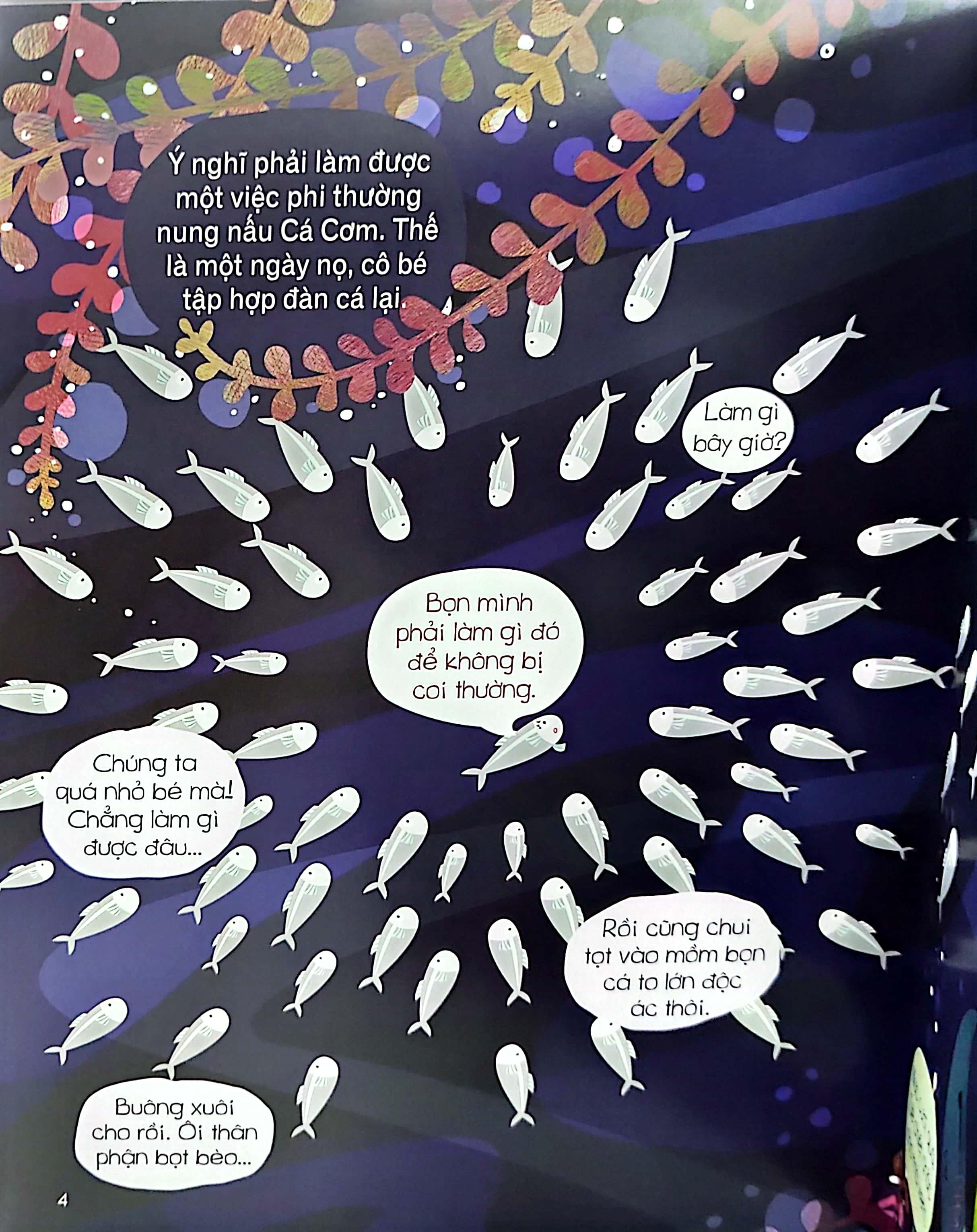 Mua tại TiktokỞ Vương Quốc CÁ, vì bé nhỏ nên Cá Cơm hay bị các loài cá khác trêu chọc và bắt nạt. Cá Cơm buồn lắm. Một ngày nọ, cô bé tập hợp gia đình m.ình lại và thông báo một quyết định táo bạo: Cá Cơm sẽ lên bờ .