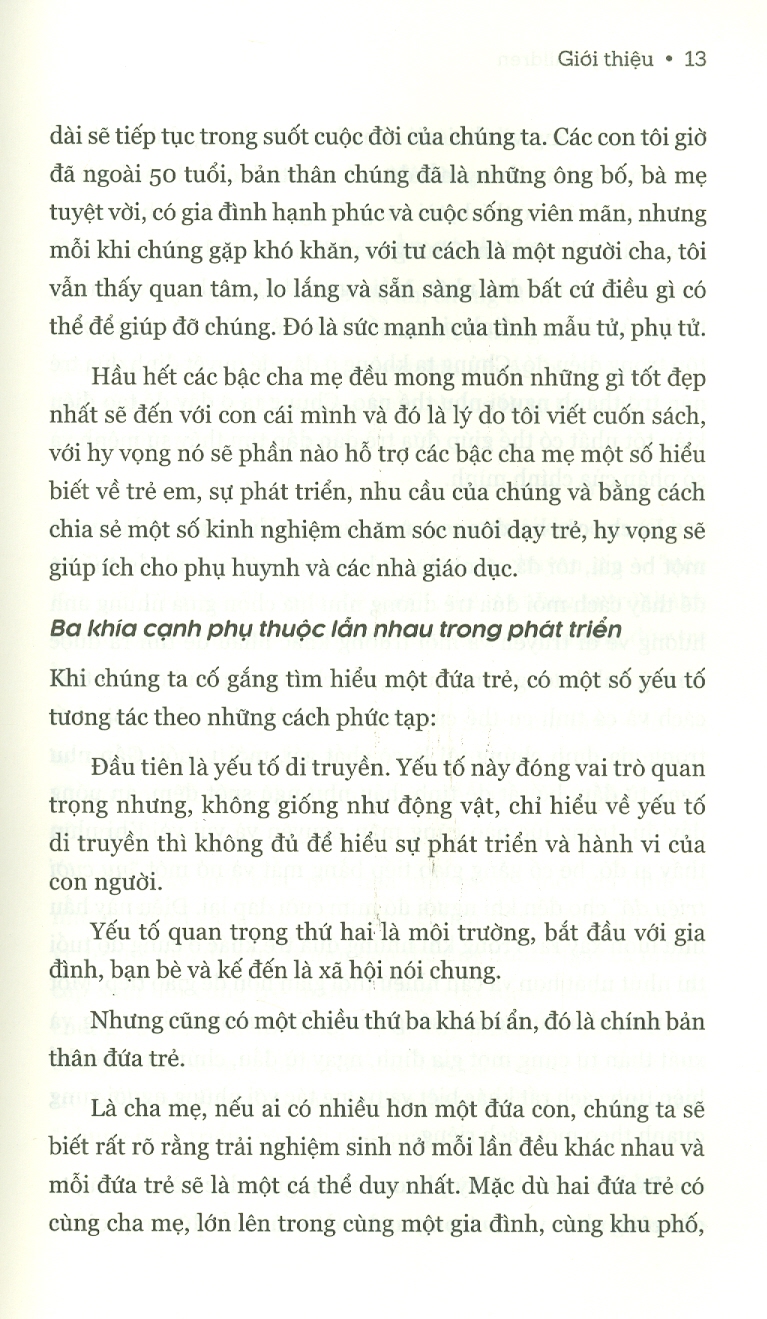 Sự tức giận ở trẻ em là một thử thách đầy mệt mỏi. Cơn giận dữ của một đứa trẻ có thể mang đến cho cha mẹ nhiều giây phút căng thẳng và nặng nề. Là cha mẹ, chúng ta lo lắng và đôi khi trong lúc tuyệt vọng, chúng ta nói cũng nhưlàm những điều mà trước khi có con chúng ta không bao giờ tưởng tượng được ra... Việc phải đối mặt với một đứa trẻ giận dữ là một thử thách to lớn Xử lí sự tức giận là việc cực kì khó. Trẻ con tức giận rất khó giải quyết. Thật mệt mỏi khi phải đối phó với những cơn phẫn nộ triền miên, nhất là khi cha mẹ bị quá tải với hàng đống việc cần hoàn thành mỗi ngày. Khi một đứa trẻ tức giận và hung hăng, cha mẹ cũng có thể thấy lo lắng về tương lai của đứa trẻ đó. Một điều khiến cho vấn đề trở nên phức tạp hơn là sự tức giận không bao giờ xuất hiện đơn lẻ. Một đứa trẻ có thể luân phiên giữa tức giận và buồn bã, giữa tức giận và xấu hổ. Thậm chí có thể vừa tức giận vừa vui sướng. Nhưng phản ứng cảm xúc của cha mẹ vẫn xảy ra bất chấp thực tế là đằng sau sự tức giận, trẻ có thể đang bị tổn thương. Khi bị dồn đến giới hạn chịu đựng, chúng ta phản ứng lại sự tức giận của con bằng cách trở nên tức giận. Sau đó, có thể chúng ta sẽ chỉ trích, chế nhạo, xa lánh con hoặc buông xuôi. Sự tức giận của con cái cũng có thể khiến chúng ta tuyệt vọng. Giải pháp là biết nhiều hơn về cơ chế của sự tức giận Đằng sau hành vi hung hãn thường ẩn giấu cảm giác dễ tổn thương. Một đứa trẻ giận dữ thường là một đứa trẻ đang bối rối, xấu hổ, thất vọng haojwc cảm thấy mình nhỏ bé, ngu ngốc hay kém cỏi. Sự tức giận của trẻ có thể là biểu hiện của nỗi buồn, sự cô đơn hoặc sợ hãi. Là người lớn, bạn cần cảm nhận thức được cơn giận dữ cực đoan của trẻ có thể gợi lên trong bạn cảm xúc gì, và bạn cần được hỗ trợ để biết cách kiểm soát cảm xúc của chính mình - những cảm xúc có thể ngăn cản bạn thực hiện nhiệm vụ quan trọng là trở thành điểm tựa tinh thần cho con. Cuốn sách này cung cấp cho bạn tất cả những gì cần biết về sự tức giận và hung hăng của con mình Cuốn sáchTrẻ Cáu Cha Mẹ Gắtsẽ làm sáng tỏ sự tức giận, nhắc nhở mọi người lí do tại sao nó lại là một cảm xúc quan trọng và cần thiết. Sự tức giận có một vai trò xã hội rất quan trọng giúp chúng ta tạo ta các ranh giới và bảo vệ chính mình. Cuốn sách này cung cấp cho bạn tất cả những gì cần biết về sự tức giận và hung hăng của con mình. Trọng tâm của cuốn sách không phải là cho con bạn bất cứ thứ gì chúng muốn, cũng không phải là dung túng cho những hành vi hung hãn. Mà sẽ chỉ cho bạn một cách tiếp cận mới để duy trì ranh giới lành mạnh có thể giúp bạn thiết lập các giới hạn một cách hiệu quả, đồng thời hiểu được cảm xúc của con mình. Bạn cần nhớ rằng, việc hiểu được cảm xúc của bản thân và con cái là chìa khóa giúp bạn thành công khi thiết lập các giới hạn.