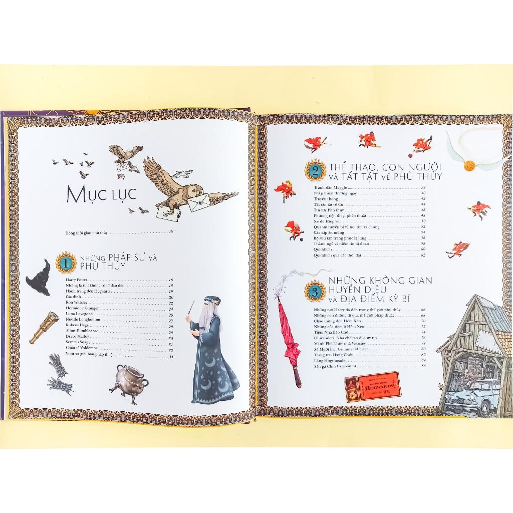 Bảy chương sách sẽ giúp bạn sống lại những khoảnh khắc khó quên với các danh sách lý thú, len lỏi vào mọi ngõ ngách qua những bản đồ cùng tranh vẽ sống động, và khám phá mọi món ăn cùng mọi vật dụng ma thuật thú vị mà bạn từng mơ tới. Tổng hợp tất cả những điều cần biết từ tập Harry Potter và Hòn đá Phù thủy cho đến Bảo bối Tử thần, đây là cuốn bách khoa toàn thư đầy ắp sự thật thú vị về thế giới phù thủy được trình bày đầy mê hoặc bởi bảy họa sĩ minh họa tuyệt vời trên khắp thế giới.