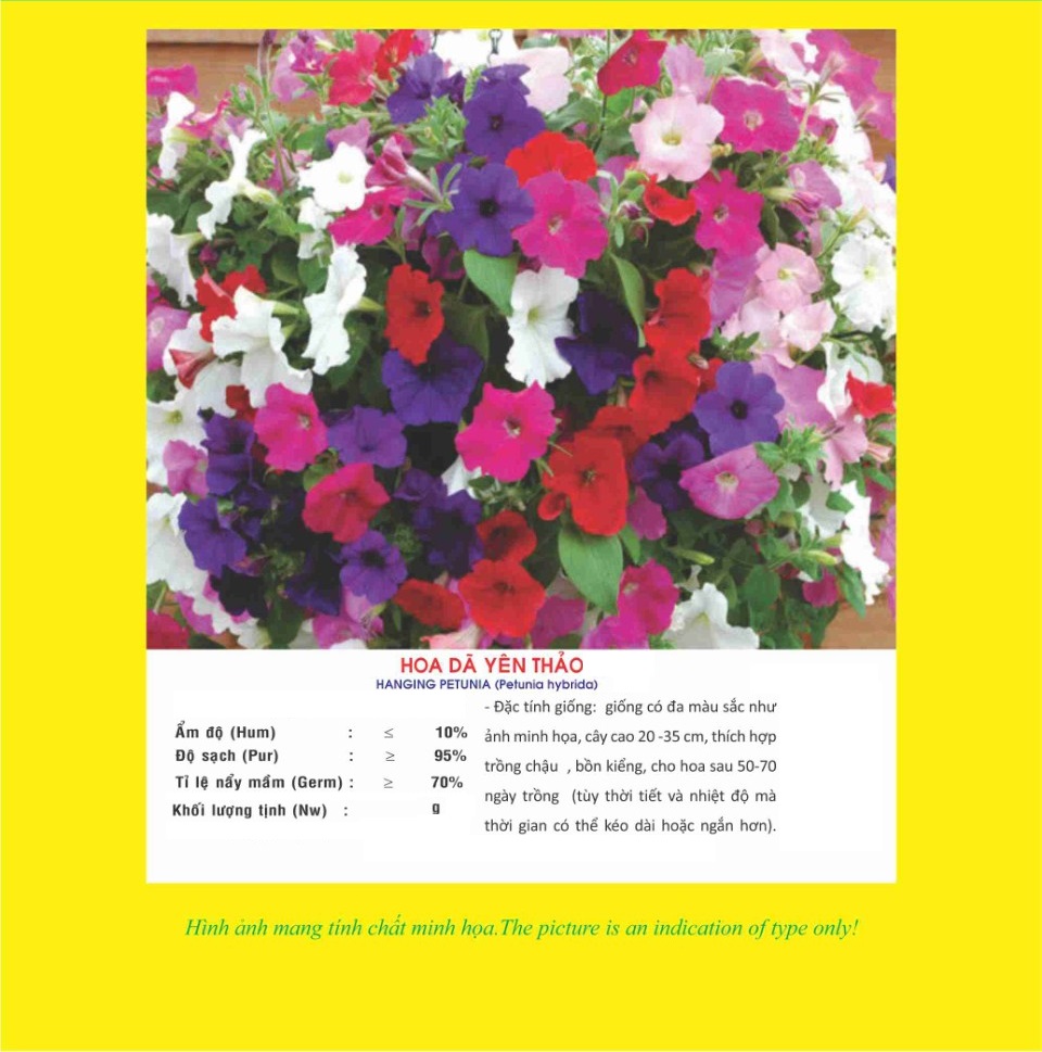 Đặc tính giống: Hoa Dã Yên Thảo - Giống kháng bệnh tốt, giống có nhiều màu sắc như ảnh minh họa, cây cao 25-30cm, thích hợp trồng trong chậu, cho hoa sau 50-70 ngày trồng