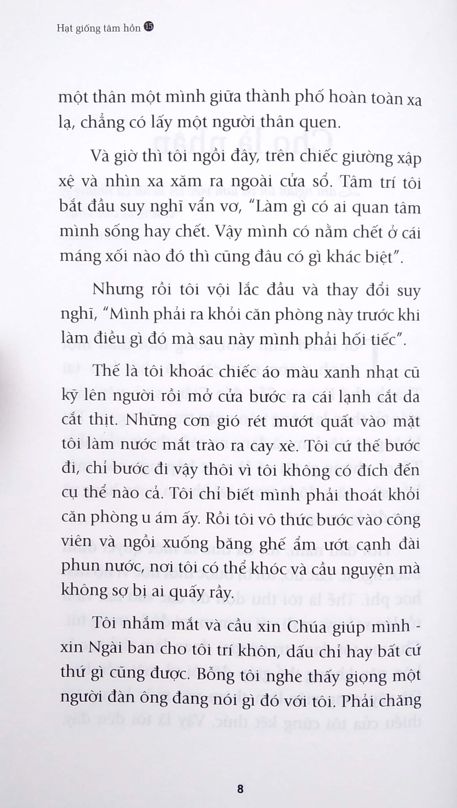 Bạn hãy hình dung cuộc sống như một tờ giấy trắng và nghịch cảnh là các chấm đen trên tờ giấy. Trong những giây phút nghiệt ngã, có người chăm chăm vào mặt tối của cuộc sống nên chọn cách đầu hàng số phận, đóng chặt cửa lòng hoặc chối bỏ sự thật, và kết quả là họ rơi vào vòng lẩn quẩn của cảm giác bất lực, cô độc và bị bỏ rơi. Tương tự, nếu liên tục để ý đến chấm đen và chỉ xem đó là vết bẩn, bạn rất có thể sẽ muốn vứt tờ giấy đi. Thế nhưng khi làm vậy, bạn sẽ bỏ lỡ “món quà” cuộc sống trao tặng, vì bạn chỉ có một cuộc đời mà thôi.