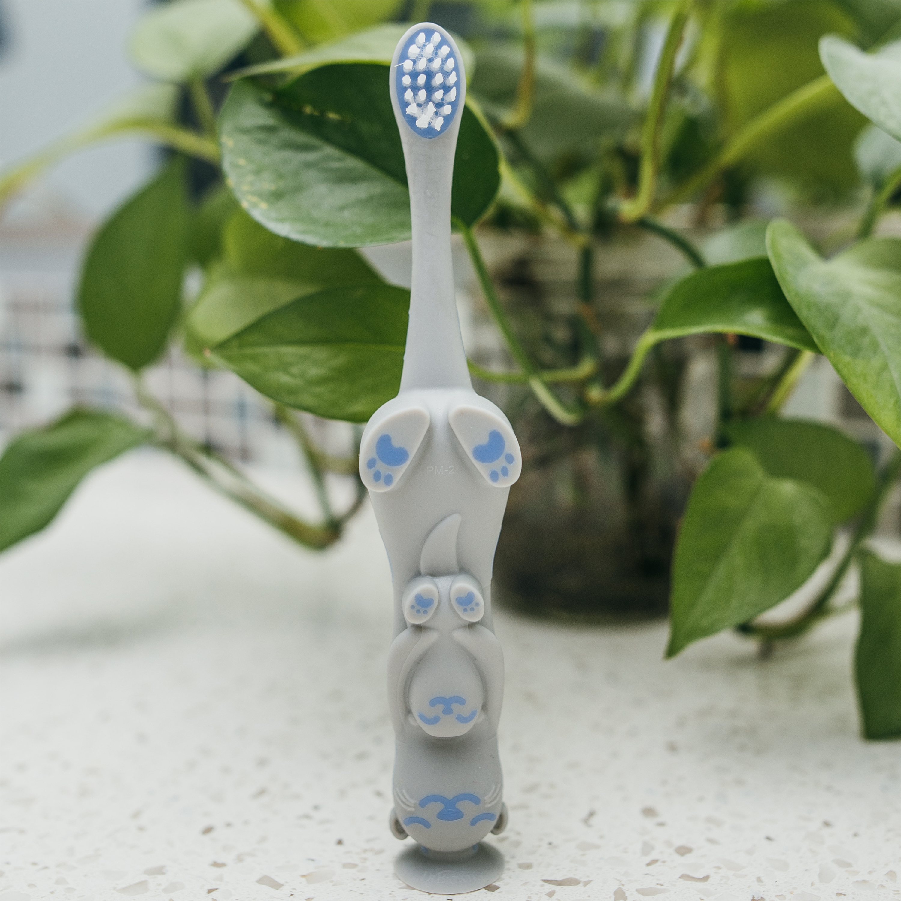 • Hình dáng của bàn chải hình con rái cá giúp ngón tay nhỏ của bé cầm nắm chắc chắn khi bạn giúp bé đánh răng