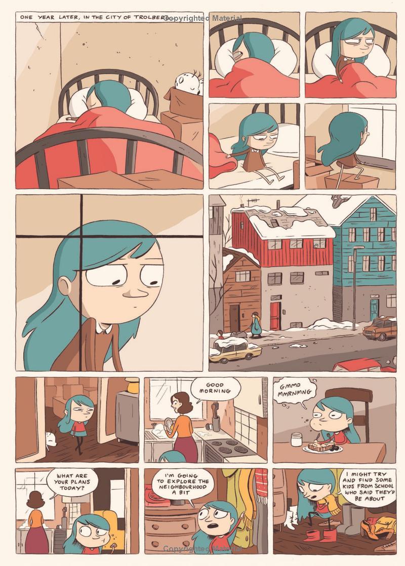 Hilda and her mother have finally laid roots down in their new home in Trolberg. Pining for her magical friends and wonder filled homeland, Hilda is finding it hard to fit in to this crowded new place. But today is somehow different, today Hilda sees a glimmer of the magic she left behind in the fjords.