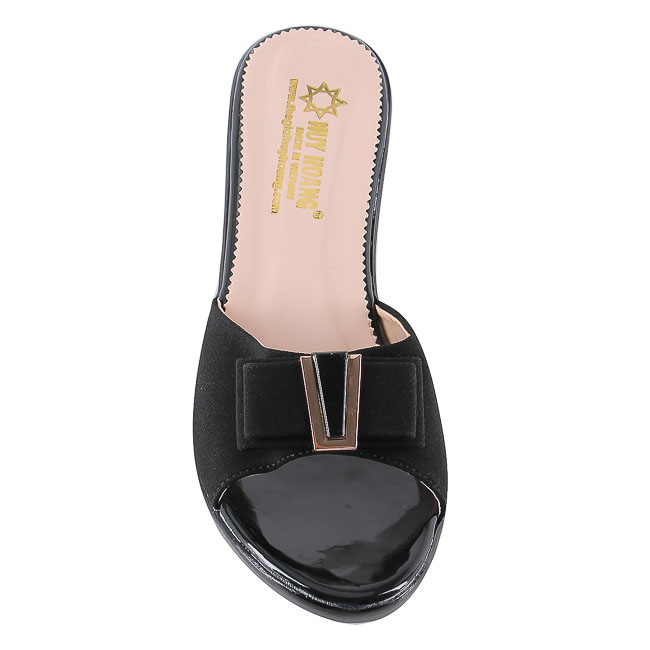 - Dép nữ cao gót quai ngang một bản TRường Hải màu đen gót vuông 8cm da mềm DN139 thiết kế với kiểu dáng ôm chân, thon gọn, thoải mái di chuyển mà không lo