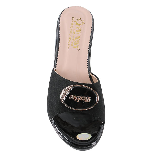 - Dép nữ cao gót quai ngang một bản TRường Hải màu đen gót vuông 8cm da mềm DN139 thiết kế với kiểu dáng ôm chân, thon gọn, thoải mái di chuyển mà không lo