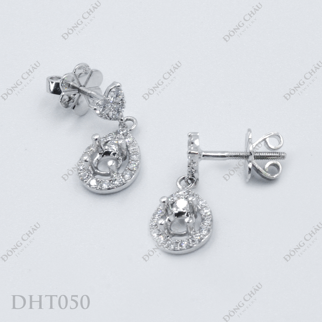 Hoa tai kim cương trái tim tòn ten tròn đính tấm 4 chấu - DHT050