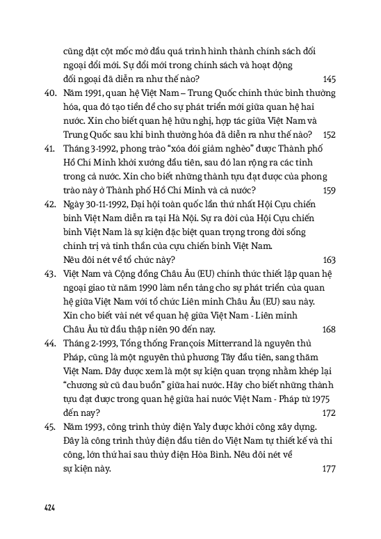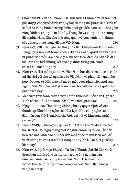 Tất cả những vấn đề này đã được chọn lọc để gói gọn trong 100 câu hỏi đáp, do nhóm Nhân văn trẻ - gồm các giảng viên khoa Sử và Quan hệ quốc tế Trường Đại học Khoa học Xã Hội Nhân Văn thực hiện. Sách có phần phụ lục danh sách những vị lãnh đạo Đảng và nhà nước trong thời kỳ này, đồng thời điểm những sự kiện tiêu biểu nhất qua 37 năm. Mỗi câu hỏi đáp đều có hình ảnh tư liệu minh họa.