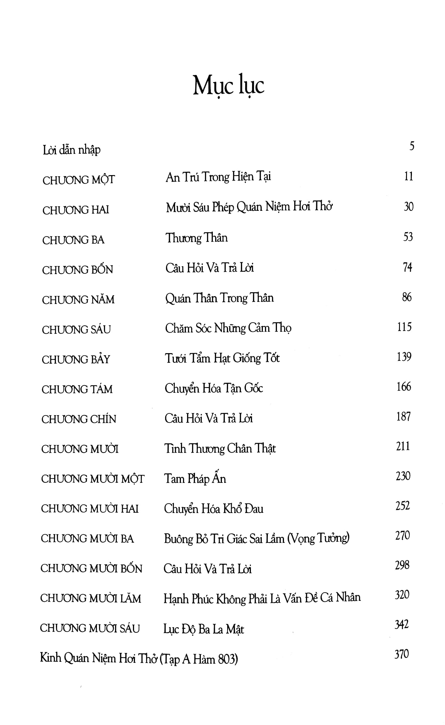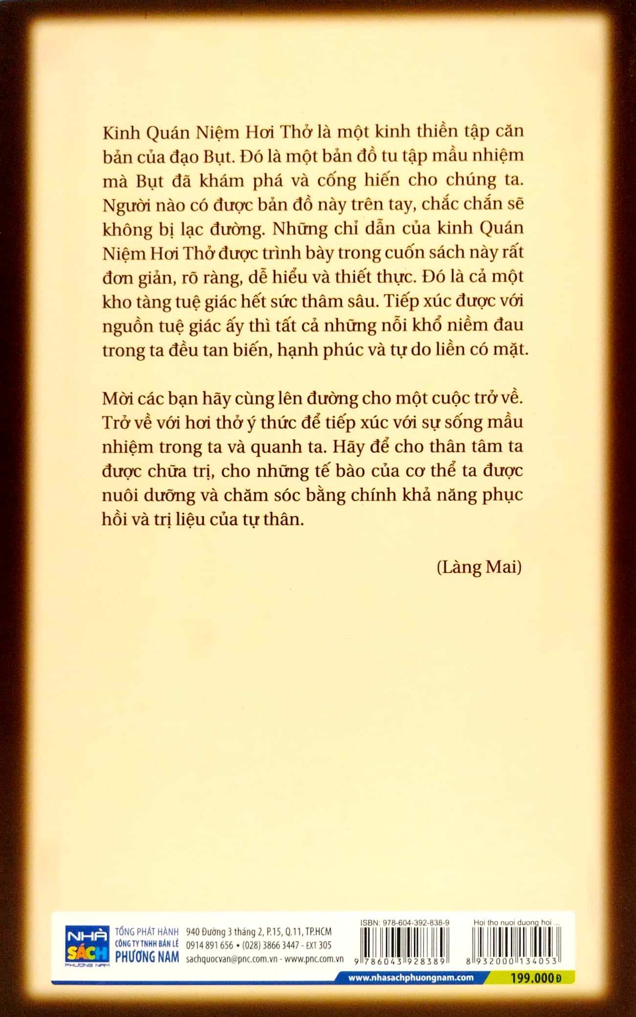 Kinh Quán Niệm Hơi Thở là một kinh thiền tập căn bản của đạo Bụt. Đó là một bản đồ tu tập mầu nhiệm mà Bụt đã khám phá và cống hiến cho chúng ta. Người nào có được bản đồ này trên tay, chắc chắn sẽ không bị lạc đường. Những chỉ dẫn của kinh Quán Niệm Hơi Thở được trình bày trong cuốn sách này rất đơn giản, rõ ràng, dễ hiểu và thiết thực. Đó là cả một kho tàng tuệ giác hết sức thâm sâu. Tiếp xúc được với nguồn tuệ giác ấy thì tất cả những nỗi khổ niềm đau trong ta đều tan biến, hạnh phúc và tự do liền có mặt.