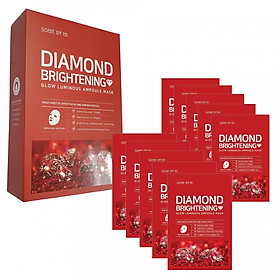 Công dụng:- Chiết xuất ngọc trai và bột kim cương hỗ trợ làm sáng làn da xỉn màu đem lại làn da trắng sáng, căng bóng.- Sử dụng 100% vải cellulose, nó hoàn toàn ôm sát làn da bạn. Tối đa hóa hiệu quả của mặt nạ bằng cách cung cấp các thành phần hiệu quả cho da mà không bị bay hơi.- Đã hoàn thành thử nghiệm không gây dị ứng da và 20 thử nghiệm không có thành phần gây hại. Đây là mặt nạ có thể sử dụng an toàn với làn da nhạy cảm.Thành phần:Bột kim cương 100ppb; Chiết xuất ngọc trai 10,000ppm; Chiết xuất quả lựu đỏ 10,000ppm; Rose Hips Oil; Thành phần độc quyền (Amino acid component)