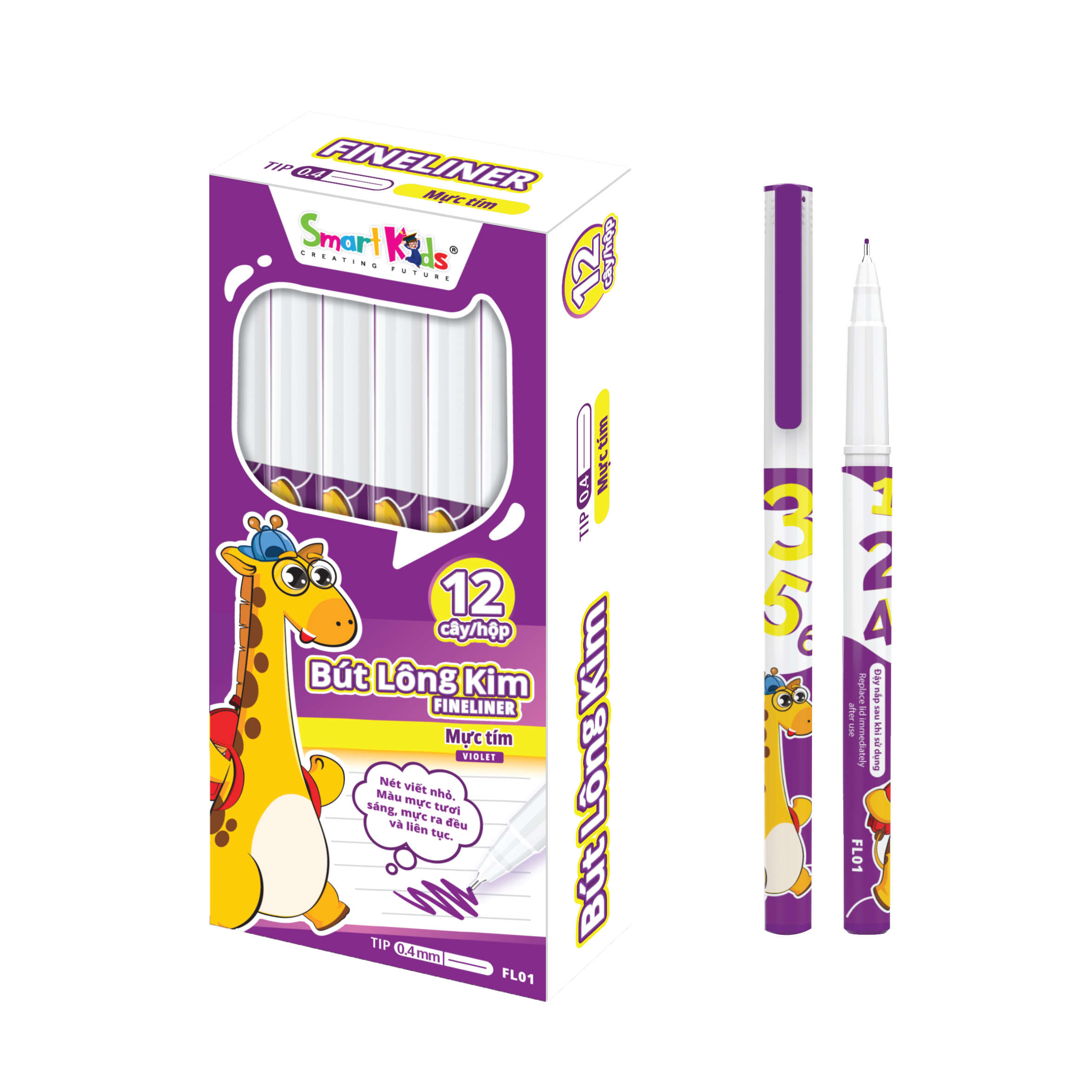 ✨Hộp 12 bút lông kim Smartkids Fineliner Gira mực tím 0.4mm FL01 dành cho học sinh tiểu học