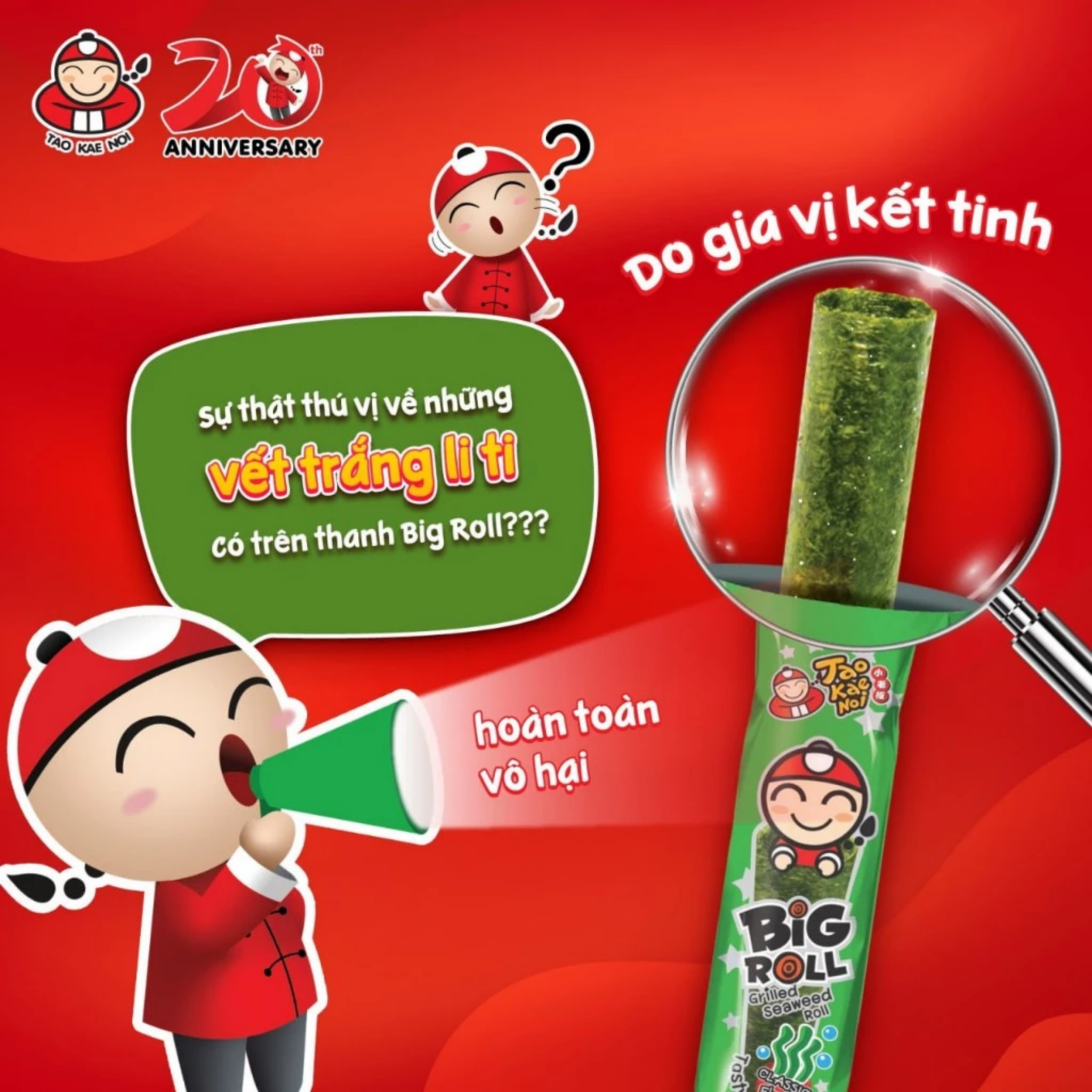Rong biển cuộn tròn nướng Tao Kae Noi BIG ROLL giòn tan đậm vị, thơm ngon hấp dẫn với nguyên liệu rong biển, bánh rất giàu các chất dinh dưỡng và chất khoáng. Màu sắc