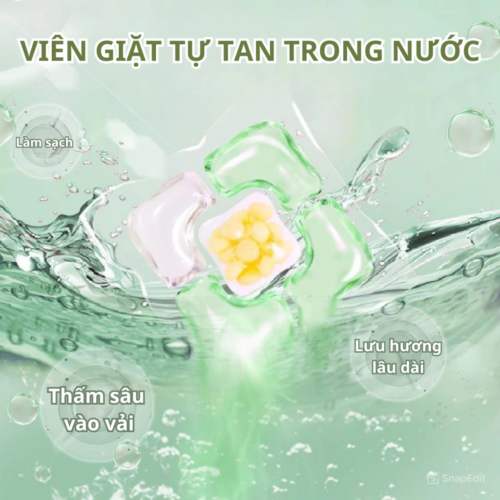 THÔNG TIN SẢN PHẨM: - Mùi Hương: Nước Hoa - Công Thức: Dạng sánh - Thể tích: 10ml - Hình thức: Chất lỏng - Đóng gói: hộp/140 viên     ĐẶC ĐIỂM NỔI BẬT - Đơn giản, hiệu quả chỉ với 1 viên đã bao gồm nước giặt nước xả vải và hạt lưu lương giúp cho việc giặt quần áo trở nên nhẹ nhàng hơn. - Đánh bật các vết bẩn, làm trắng sáng vượt trội và cho mùi hương thơm lưu lại quần áo lâu mà không làm phai màu quần áo - An toàn với quần áo màu, quần áo thể thao, quần áo trẻ em,... - Có tính kháng khuẩn rất cao, trong trường hợp trời mưa hoặc bạn phải phơi quần áo trong nhà thì quần áo vẫn không có mùi ẩm mốc. - Không rườm rà mất nhiều công sức với bột giặt và nước xả thông thường mà lại cực kỳ tiện lợi chỉ cần 1 viên duy nhất, chẳng cần phải cân đo đong đếm xem bao nhiêu xà phòng, bao nhiêu nước xả, chỉ cần thả vào máy giặt và ấn nút là xong    Giới thiệu Viên nước giặt xả  Viên nước giặt xả là sản phẩm chuyên dụng trong việc giặt quần áo, mỗi viên chứa các ngăn Giặt-xả-dưỡng vải   Ngoài việc giặt sạch áo quần, viên giặt còn giúp làm mềm sợi vải, loại bỏ xơ vải giúp quần áo tinh tươm hơn  Viên Giặt Quần Áo có tính khử khuẩn cao, trong trường hợp trời mưa hoặc bạn phải phơi quần áo trong nhà thì quần áo vẫn không có mùi ẩm mốc  Thao tác vô cùng đơn giản, tiện lợi, chỉ cần bỏ viên giặt vào cùng quần áo trước khi khởi động máy giặt.  Ngoài ra Viên nước giặt xả có thể mang đi du lịch, đi làm xa, vô cùng tiện lợi       HƯỚNG DẪN SỬ DỤNG : - Dùng 2-3 viên cho mỗi lần giặt tương ứng 40-50L nước hoặc ít hơn ( khoảng 4-5kg quần áo khô ). - Thả trực tiếp vào lồng máy giặt rồi đặt quần áo lên trên. Không cần cắt bỏ vỏ bên ngoài, viên giặt gặp nước sẽ tự tan. - Viên nước giặt xả dùng được cho tất cả các loại máy giặt