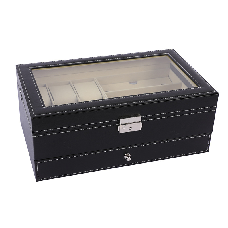 Hộp 2 tầng đựng đồng hồ và trang sức vỏ da carbon màu đen #hộp #hopdungdongho #hopdungtrangsuc