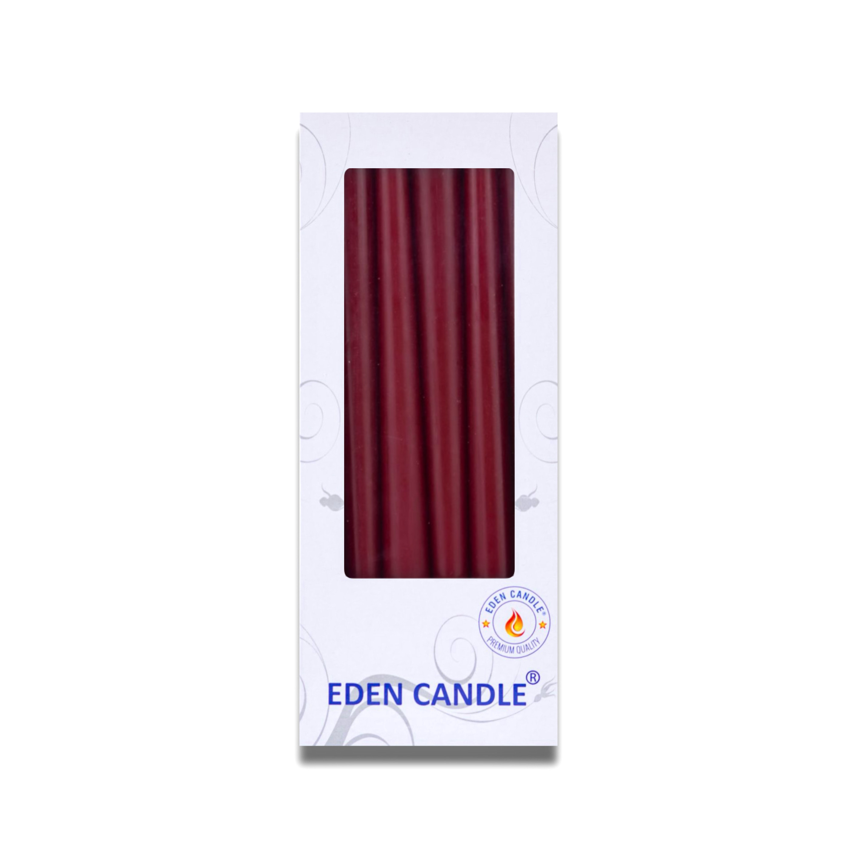 THÔNG TIN SẢN PHẨM • Mã sản phẩm: EDC2331 • Tên sản phẩm: Hộp 6 nến thơm taper EDC233125 cm • Màu sắc: Đỏ bọc đô • Kích thước: đường kính (D) x chiều cao