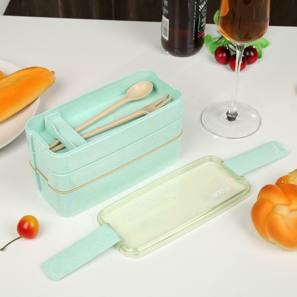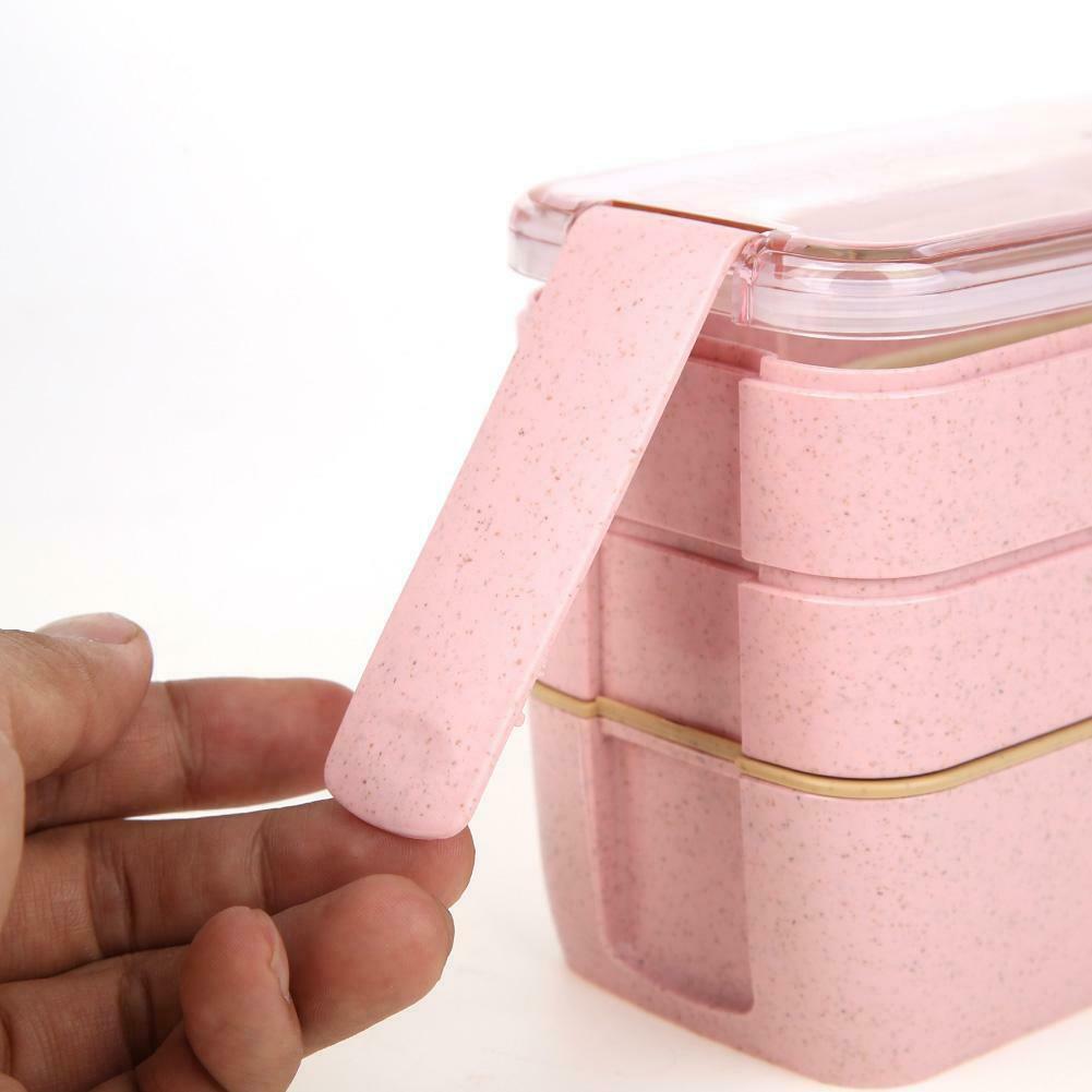 ✨Hộp Cơm 3 Tầng Lúa Mạch Lunch Box + Tặng Kèm Muỗng, Nĩa