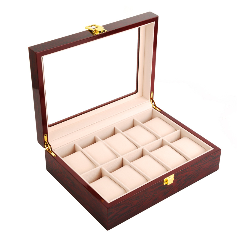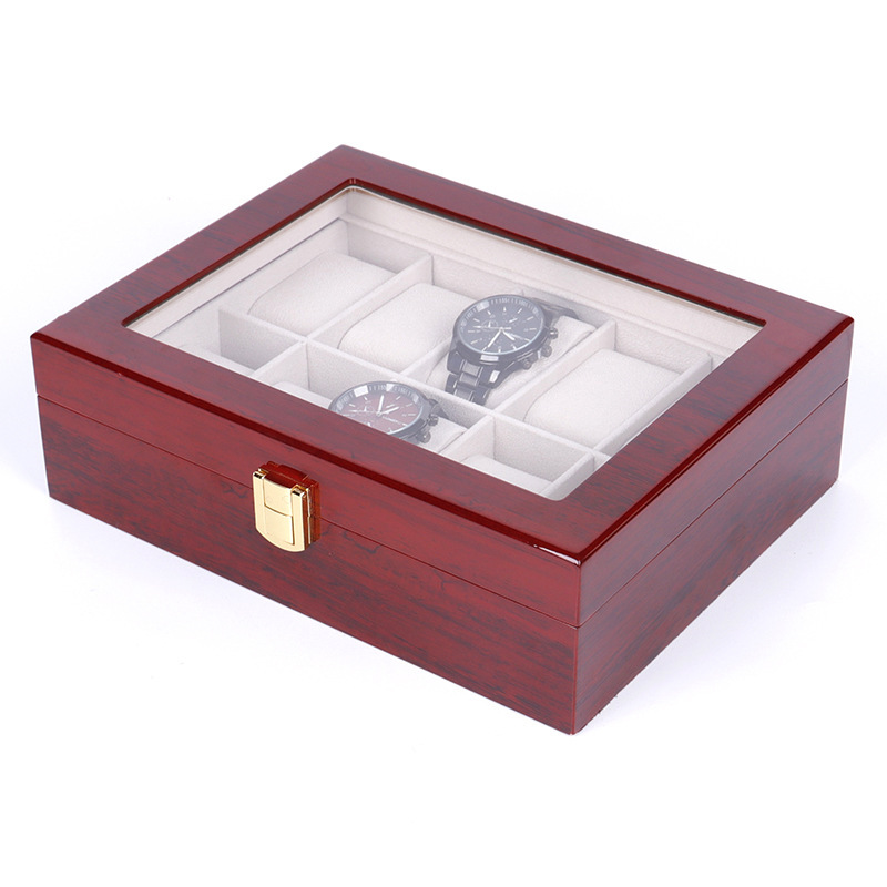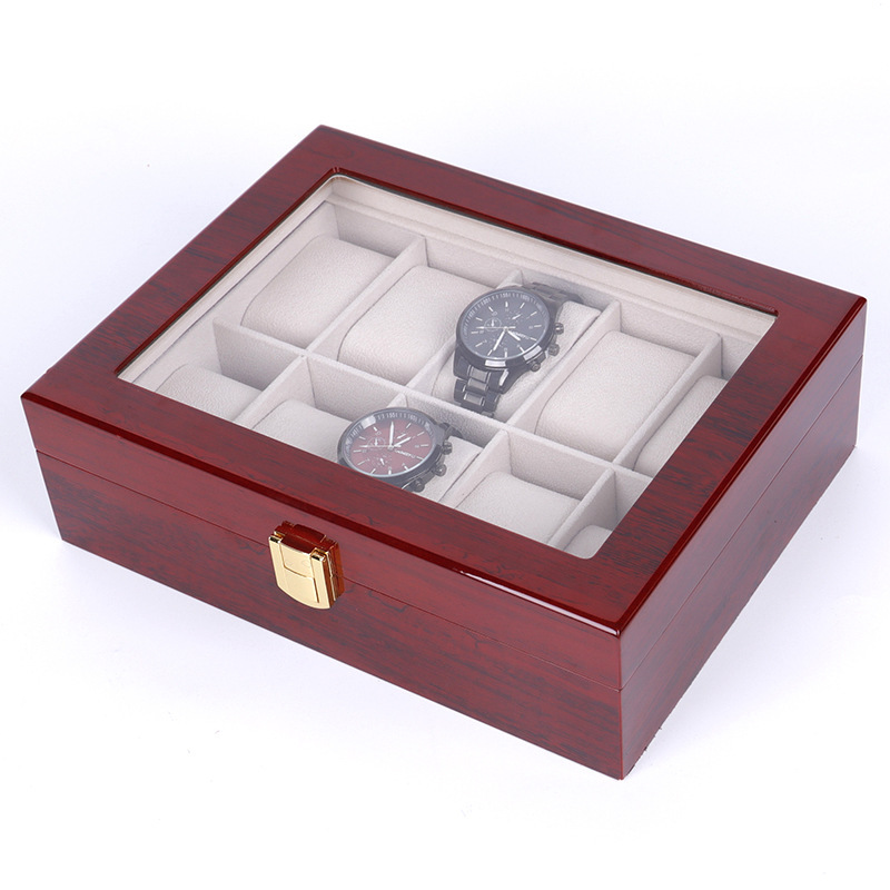 ✨Hộp Đồng Hồ 10 Chiếc SAIKE SAIKE S101 Vỏ Gỗ Sơn Phủ Màu Đỏ Vân Gỗ
