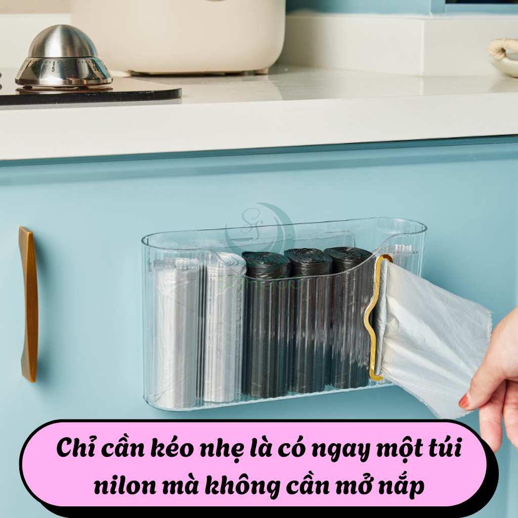 • Thiết kế đẹp: Dạng trong suốt giúp dễ kiểm soát số lượng túi còn lại, phù hợp với không gian bếp, phòng giặt hoặc tủ đựng rác