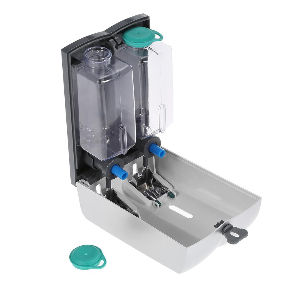 The double chamber liquid soap dispensers are made of new and good quality ABS, which is durable, compact and in sleek looking. The pump is designed for easy pumping with one hand. The separated outlet liquid nozzle is perfect to avoid leaking and waste. Perfect for hotel, shopping mall, office building, bathroom, toilet, school, kindergarten, banks and other public places.