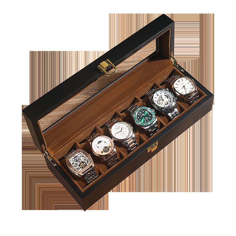 Hộp Để Đồng Hồ 6 Chiếc Vỏ Gỗ Đen [Lót Nhung Nâu] - DH6NN