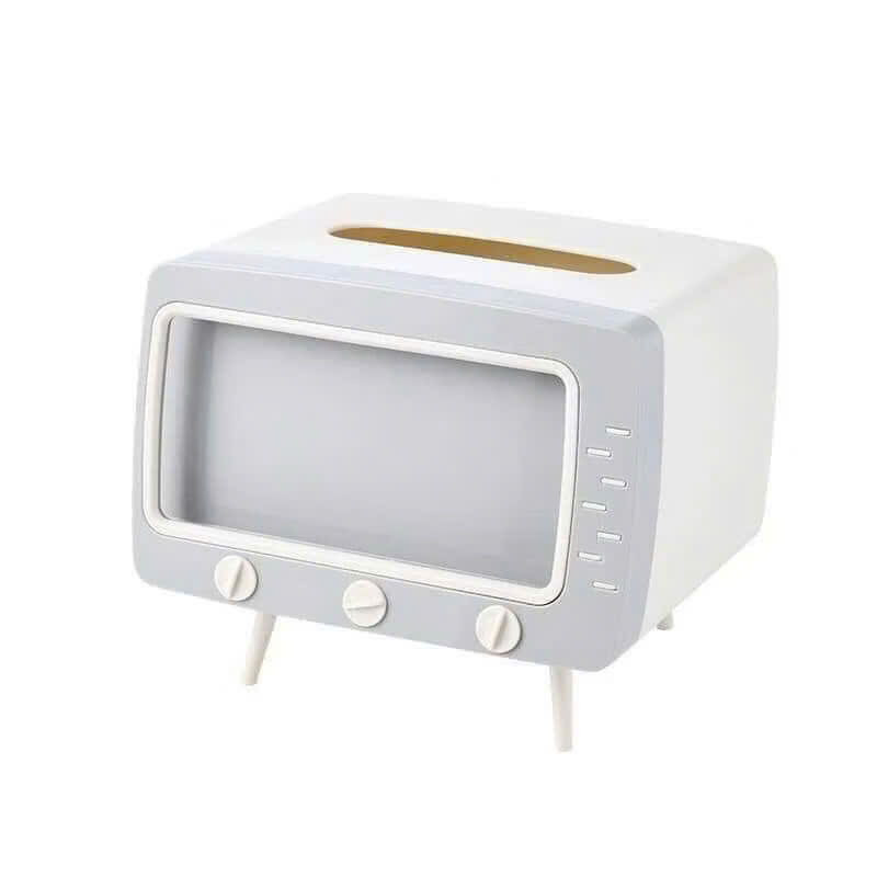 Thiết kế đẹp độc lạ hình dáng như chiếc tivi ngày xưa, mặt trước có chỗ để màn hình điện thoại, bên trong lại là hộp giấy ăn vô cùng tiện dụng, đặt trên bàn