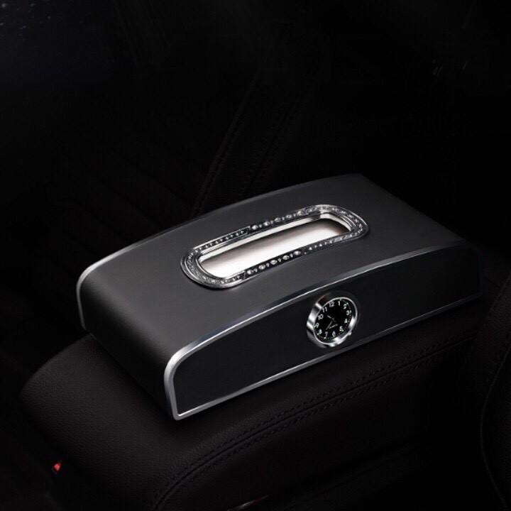 Hộp đựng khăn giấy trên ô tô có đồng hồ và bảng số điện thoại cao cấp tại ThanhBinhAuto
