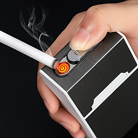 Hộp đựng thuoc lá 20 điếu to kiêm châm điện hồng ngoại 2 trong 1 dạc USB tiện lợi không ngại mưa gió loại tốt