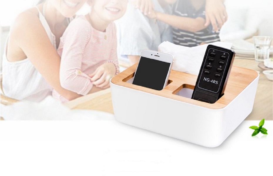 ✨Hộp giấy nắp gỗ chia 3 ngăn - Đựng điều khiển