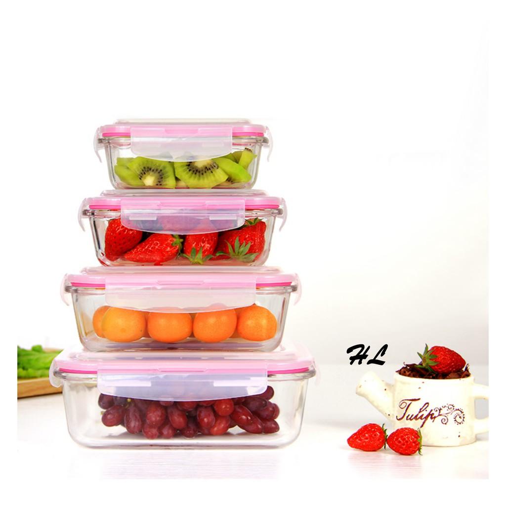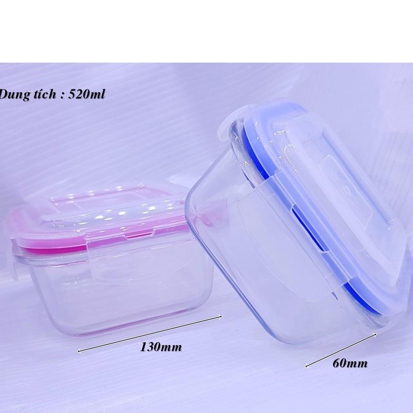✨Hộp lạnh thủy tinh vuông nắp nhựa kín 520ml | HỘP THỦY TINH NẮP KÍN CAO CẤP INTERLOCK