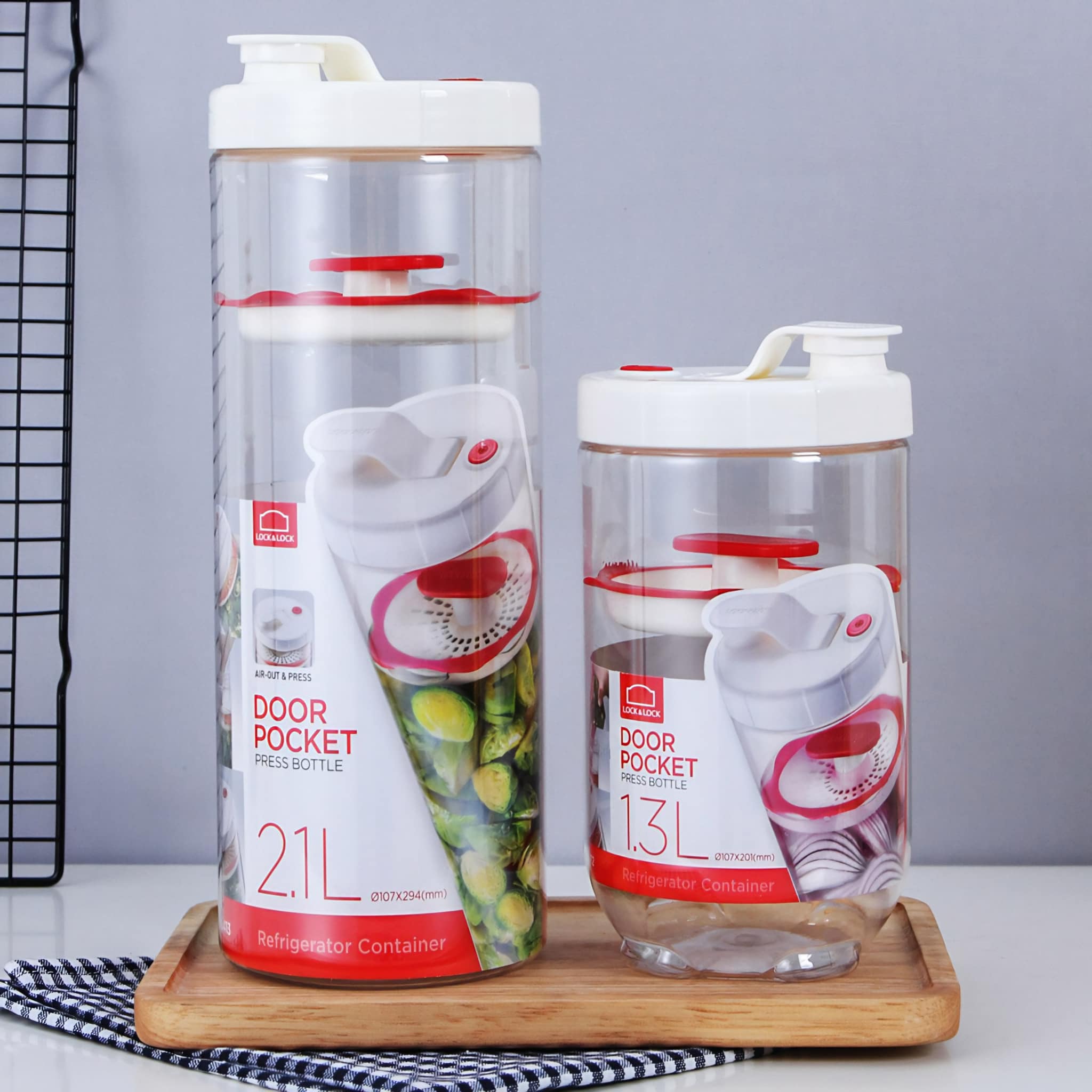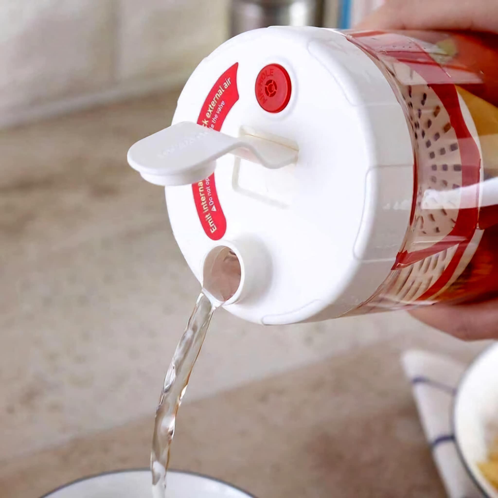 Hộp thiết kế với lớp lưới chèn thực phẩm bên trong giúp việc chèn , ngâm dưa chua , củ kiệu.... được thấm đều , có đầu rót giúp chắt nước ra dễ dàng.