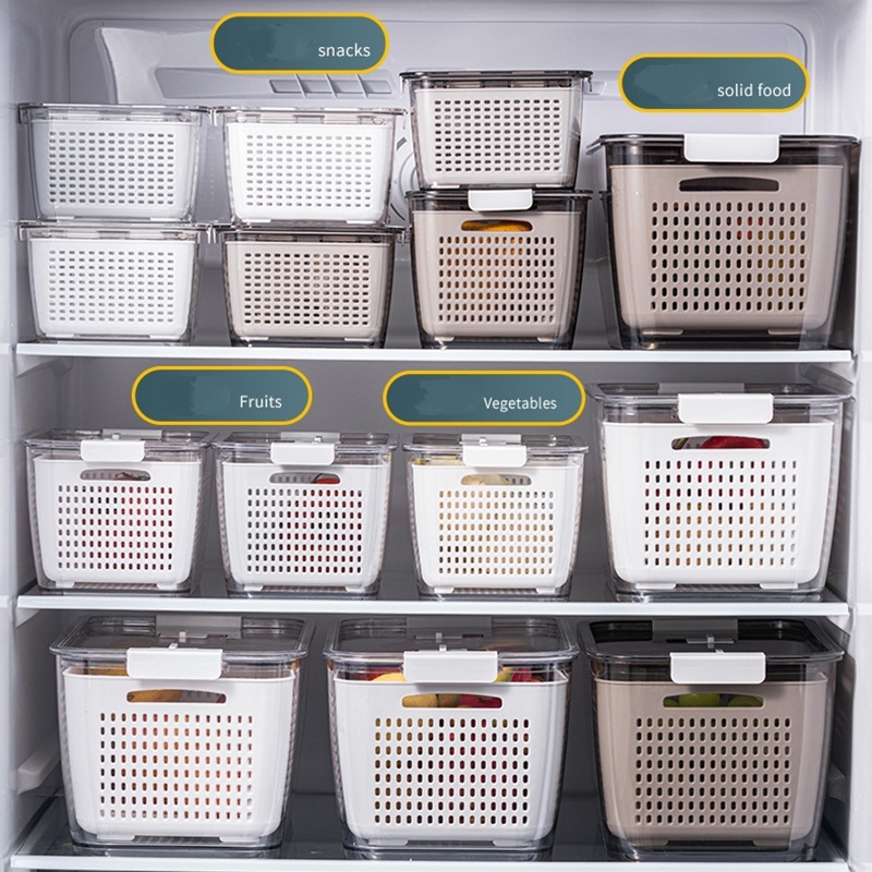 ✨Hộp nhựa PET đựng thực phẩm để tủ lạnh 2in1 tiện dụng có lỗ thoát nước