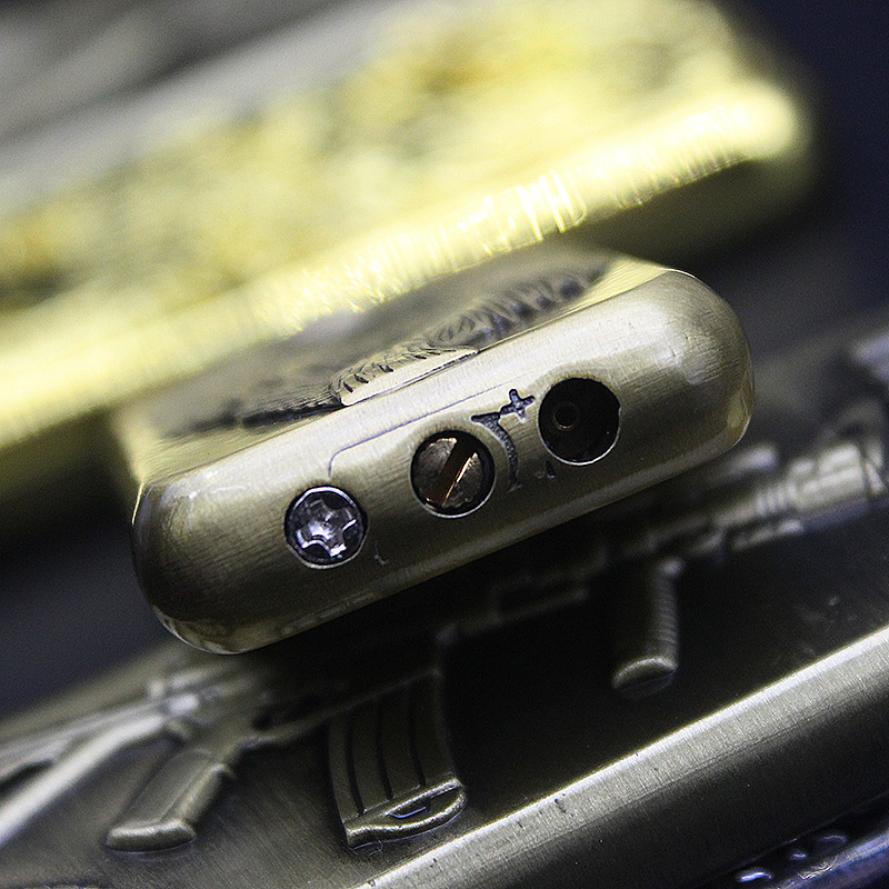 - – Mã sản phẩm: D06D - – Màu sắc: Đen - – Họa tiết: Mô hình điệp viên 007 - – Loại bật lửa: Gas đá - – Số ngọn lửa: 1 - – Đánh lửa: - – Nhiên liệu: Gas - – Tiện ích: Không - – Chất liệu: Thép nguyên khối - – Kích thước: Chiều cao: 6.1cm, Chiều rộng: 3.7cm ; Độ dày: 1.0cm. - – Trọng lượng: ~120g (Chưa bao gồm bao bì) - – Bộ sản phẩm bao gồm: 1 bật lửa, không kèm hộp đựng - – Nơi sản xuất: Hong Kong -