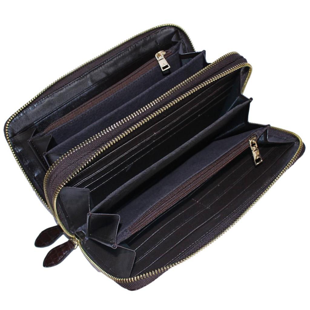 ✨HP3737 - Ví nữ da cá sấu Huy Hoàng nhiều ngăn cầm tay màu nâu đất