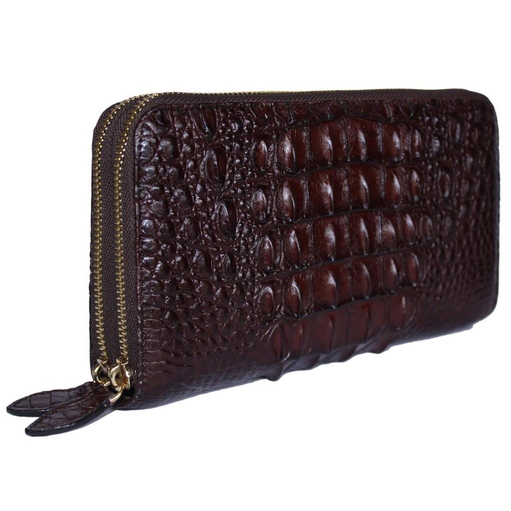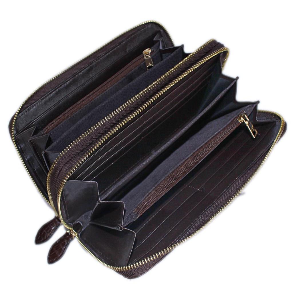 Ví/Bóp nữ da bò Huy Hoàng vân cá sấu nhiều ngăn màu nâu 3134