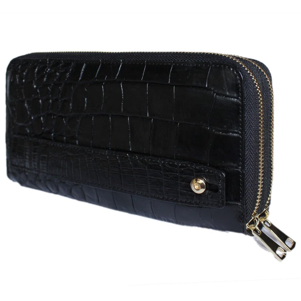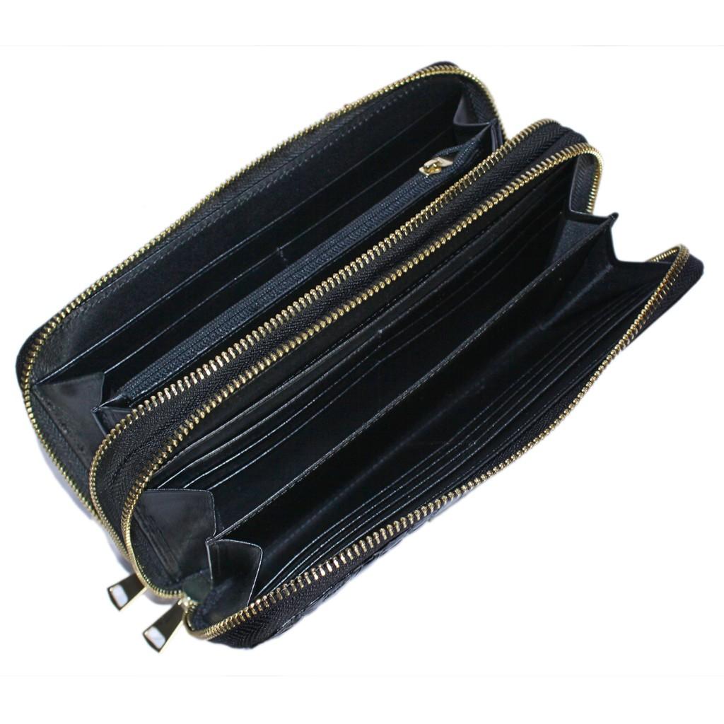 ✨HP3750 - Ví nữ da cá sấu Huy Hoàng trơn nhiều ngăn cầm tay màu đen
