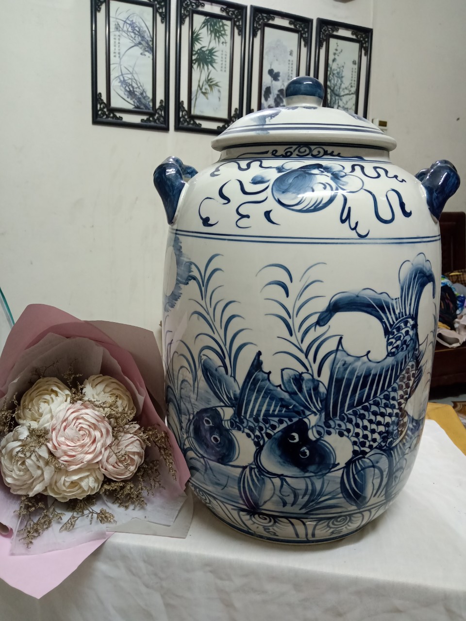 ✨Hũ đựng rượu gạo vẽ cá chép gốm sứ Bát Tràng