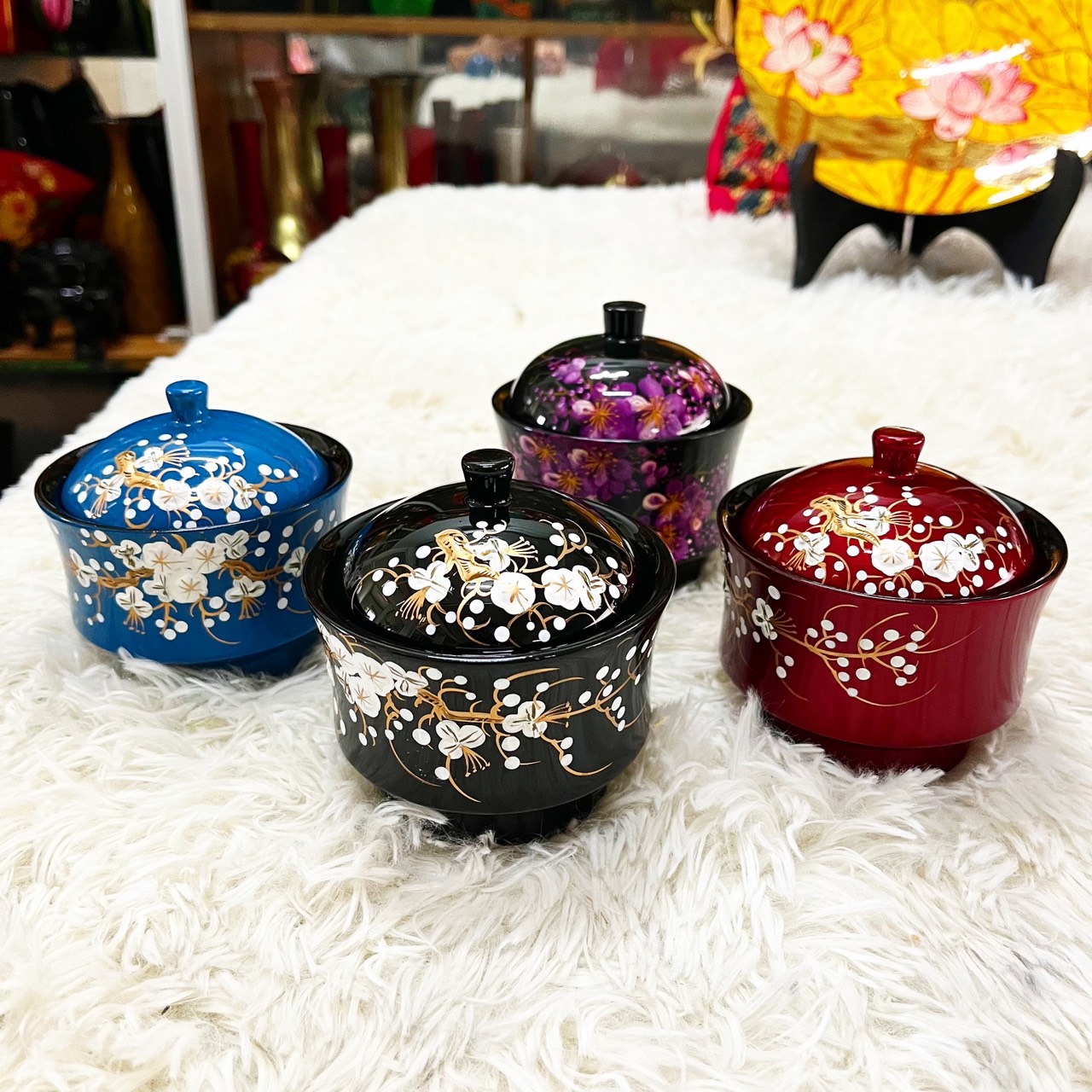 Hộp kẹo sơn mài, hộp mứt tết sơn mài, hũ kẹo, hũ mứt sơn mài - sơn mài Hạ Thái