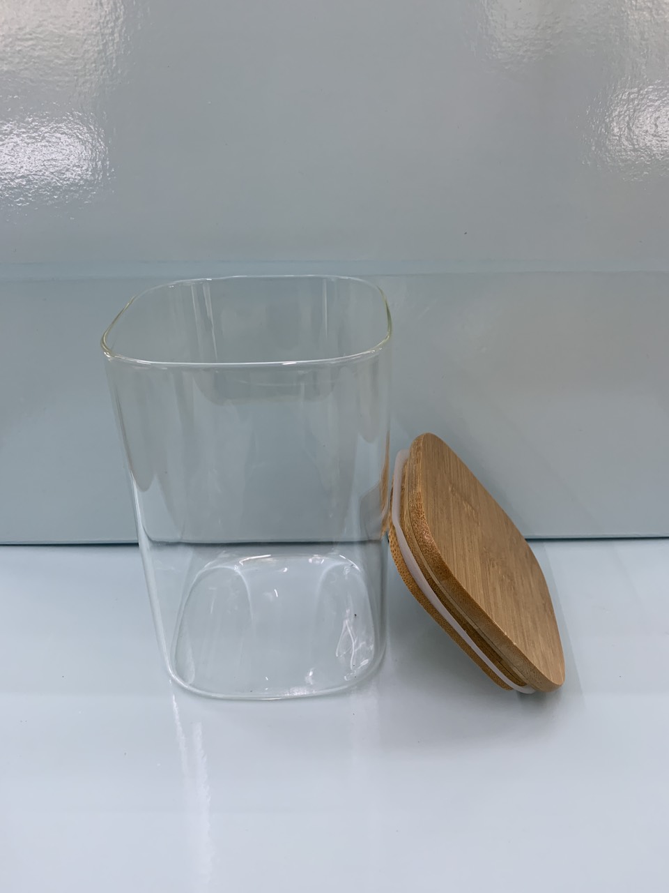 Hũ thuỷ tinh nắp gỗ dáng vuông độc đáo để đựng các loại hạt, đồ khô hay bánh kẹo, mì khô vừa đẹp, lại sạch sẽ, gọn gàng Hũ có nắp gỗ có gioăng silicone